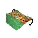 ・底マチ幅を広くとってるので紐を締めるとまるっこくなってかわいいです。底マチと紐通し、裏地部分は緑色をあわせました。