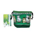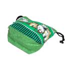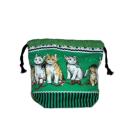 ・底マチ幅を広くとってるので紐を締めるとまるっこくなってかわいいです。底マチと紐通し部分と裏地は緑をあわせました。