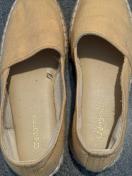 イエローのキャンバス素材で作られたエスパドリーユスタイルのスリッポン。