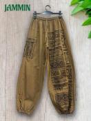 左前と右脇のポケットにアジアン柄入りのゆるめパンツです。