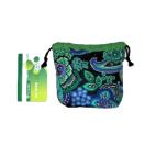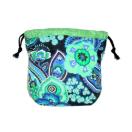 ・底マチ幅を広くとってるので紐を締めるとまるっこくなってかわいいです。底マチと紐通し部分は緑無地柄あわせました。
