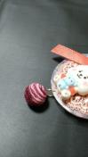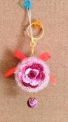 リボンの下にKOYAを抱っこしたRJ、裏面はピンクのレースとお花の可愛いキーリングです。