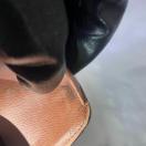 モノグラム・キャンバスとヌメ革の組み合わせは、使い込むほどにヌメ革が飴色に変化し、ヴィンテージならではの風合いが楽しめます。