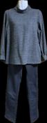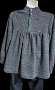 グレー系の落ち着いた色合いのチェック柄トップスです。首元はハイネック、袖口はギャザーでデザイン性があります。ゆったりとしたシルエットで体型カバーにもなり、快適な着心地です。これからの季節に活躍する一枚です。