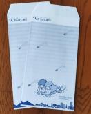 キキラライラストの青い封筒、メモ欄付きで便利。