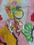 可愛らしいバレリーナと輝くトゥシューズのチャームが魅力的なキーホルダーです。