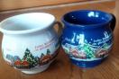 カルディコーヒーファームのクリスマスマーケットをイメージした、白と青の陶器製マグカップのセットです。?