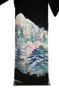 ・十日町友禅作家【岡村蒼風】暈し染め 風景文 比翼付の