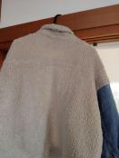 DazyのSサイズ ボアジャケットです。暖かなボア素材とデニムの切り替えデザインが特徴のフルジップアウターで、もこもことした肌触りが心地よく、これからの季節に最適です。袖部分のデニムがカジュアルな雰囲気を演出し、日常使いにぴったり。左胸にはジップ付きのポケットがあり、小物の収納にも便利です。中国製。