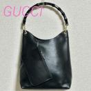 GUCCI Bamboo One-Shoulder Hobo Leather Handbag Black Gold Hardware 001・1013・002122 Made in Italy B5 Storage B9051210B