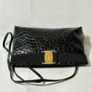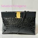 Salvatore Ferragamo フェラガモ ヴァラ リボン 型押し レザー 2way ショルダー バッグ ブラック B5710110B