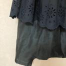 COMME des GARCONS(コムデギャルソン)のレイヤード風デザインボトムスです。ブラックの落ち着いた色合いに、スカラップカットと繊細な刺繍が施された生地が重なり、個性的ながらも上品な印象を与えます。