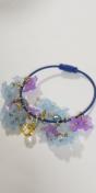 水色と紫色のフロスト加工の小花を使って花束のようなキーリングにデザインしましたぁ(*ノ▽ノ)♪