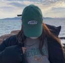 緑色のemisベースボールキャップ、刺繍ロゴ付き。