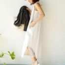 サラッとした肌触りで微光沢が特徴のキレイめ強撚スムース素材を使用したワンピース