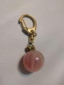 光沢のあるピンクの丸いガラス玉チャームが特徴のゴールドキーホルダーです。上品なデザインで、鍵をまとめるだけでなく、バッグチャームとしてもおしゃれのアクセントになります。シンプルなバッグに付けるだけで華やかな印象に変わります。目立った傷や汚れはなく、比較的きれいな状態です。ご自身の普段使いはもちろん、ちょっとしたプレゼントにもおすすめです。ぜひこの機会にご検討ください。