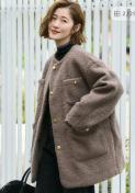 暖かみのあるブークレ素材を使用したノーカラーコートです。シックなブラウンカラーに、アクセントとなるゴールドのボタンが上品な印象を与えます。