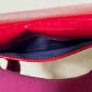 外側の情熱的なレッドに対し、インナーはクールなシルバーを採用。開いた瞬間にのぞくメタリックカラーが、大人の遊び心を演出します。サイドに揺れるロゴチャームも可愛いアクセントです。