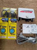 出品はマスプロ増幅器、DXアンテナテレビ受信機用ブースター電源、マスプロテレビ接続ケーブル1メートル物を2本になります。使用感ないです。