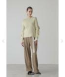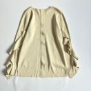 総針組織にしている為、体のラインを拾いすぎません。??ラッフルは後ろ袖から前袖に螺旋上につけられていて、動きがあり華やかな印象です。