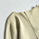 今年は2枚のラッフルがお袖についたフェミニンなアイテムに仕上がりました。????アセテートとストレッチナイロンの撚糸素材を使用。程よいストレッチとハリ感が特徴です。