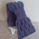 ★細いアクリル毛糸2本どりで編んだ、葉っぱ?模様の差し込みミニマフラーです。