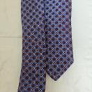 青と紫の円形模様が特徴のシルクネクタイ。