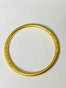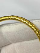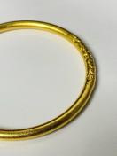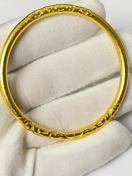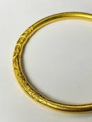 重厚感のあるゴールドの色味と、繊細な唐草紋様(アラベスク)の彫金が施されたバングルです。
