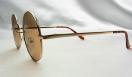 レンズの色は、柔らかなブラウン系のグラデーションです。光を通すとやや赤みを帯びた茶色に見え、クラシックで落ち着いた印象を与えます。ゴールドのフレームとの組み合わせ