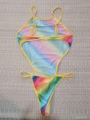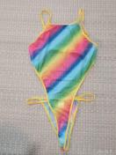 カラフルなレインボーストライプのワンピース水着