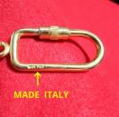 カラーはゴールドで、カラビナ部分にMADE ITALY の刻印があります。