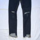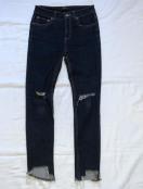 膝辺りと裾にダメージ加工が施されているスキニーデニムです*・゜