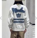 バックにはウォッシュが入ったデニムアップリケがポイントのスウェット。