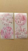 ピンクの冬景色デザイン  丸いシール 8種8枚