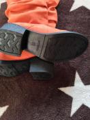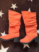 鮮やかなオレンジ色のレディースミドル丈ブーツ、MAOYAMのサイズ38です。サイズ22.5cmですが、厚めの靴下を履くと小さいと思います、最近購入しましたが小さ目です、スエード調の素材で暖かみのある印象を与えます。履き口にはクシュクシュとしたデザインが施されており、カジュアルながらもおしゃれな足元を演出。内側は滑らかな素材で、足入れもスムーズです。太めのヒールは約5cm程度と推測され、安定感があり歩きやすいデザインです。靴底にはしっかりとした滑り止めパターンがあり、安心して歩ける工夫が施されています。デイリーユースはもちろん、コーディネートのアクセントとしても活躍すること間違いなし。ジーンズやスカート、ワンピースなど、様々なファッションに合わせやすい一足です。これからの季節のおしゃれにいかがでしょうか。目立った大きな傷や汚れは見受けられませんが、あくまで画像からの推測です。写真にて状態をご確認ください。