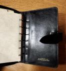 黒のレザー製システム手帳、Afternoon Teaブランド、6リング仕様。