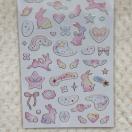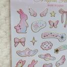 ピンクとゴールドを基調としたパステルカラーのうさぎや星のデザインが特徴のシールシート。
