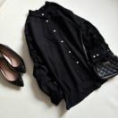 華やかな印象の長袖ブラウス。