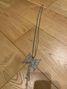 リボン型のクリスタル朝装飾が特徴のネックレス。
