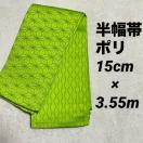 半幅帯 麻の葉柄 立涌 リバーシブル 地紋 黄緑 ポリエステル