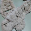 クリーム色のリアルファー素材で編まれた長めのマフラー。