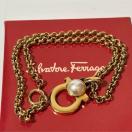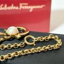 美品 Salvatore Ferragamo フェラガモ ガンチーニ ペンダント ネックレス フェイクパール ゴールド レディース U2