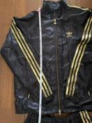 アディダスのジャージ上下セットです。ブラックにゴールドのラインが入ったデザインで、スポーティーかつおしゃれな一着です。トレーニングウェアとしてはもちろん、普段使いにもおすすめです。