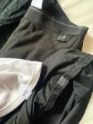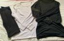 長袖シャツが2枚(白と黒)、レギンスが1枚(黒)の組み合わせです。