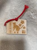 ・尾曲がりねこ神社の木製お守り。
