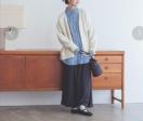 ニットの風合いと優しいカラーが上品で女性らしい雰囲気に。ゆとりのあるサイズ感で腰回りをカバーしてくれるのも嬉しいポイントです。