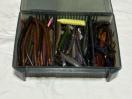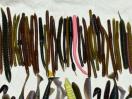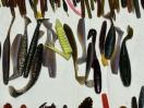 様々な種類のソフトプラスチック製釣りルアー(ワーム)です。これらは主にブラックバス釣りに使用されるアイテムで、形や色、サイズが多様にあります。