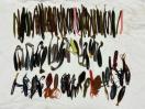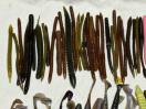 タイプ: 画像には主にストレートワーム(上部)、シャッドテールワーム(中央)、クロー(甲殻類)系ワーム(下部)が見られます。