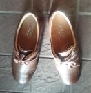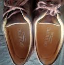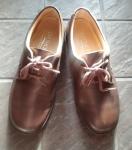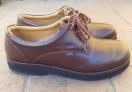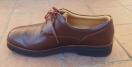 レザー製のブラウンのレースアップのウォーキングシューズ、快適な履き心地。