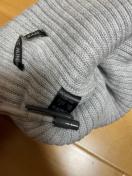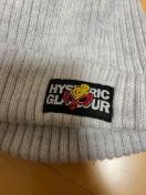 HYSTERIC GLAMOUR(ヒステリックグラマー)のニット帽です。ライトグレーのリブ編みで、正面にはブランドロゴとキャラクターデザインのパッチが縫い付けられています。タグにはLサイズ(54-56cm)の表記があり、素材はアクリル80%、ナイロン17%、毛3%です。カジュアルなスタイルに合わせやすく、これからの季節に活躍します。締切日時